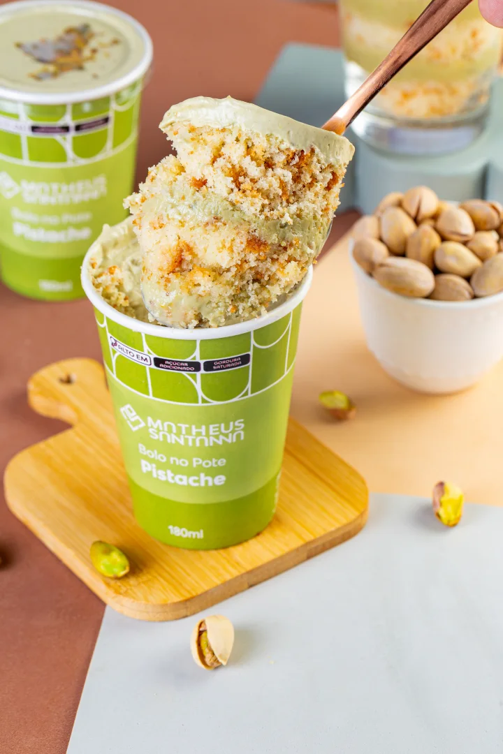 Massa de Baunilha bem molhadinha com Brigadeiro de Pistache de Verdade e Mousse de Pistache de Verdade com Lascas de Pistache de Verdade!
